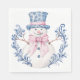 Ce design de Noël a un design primitif et millénaire avec un Snowman avec un casquette bleu et un arc rose.