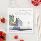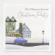 Ces serviettes de fête de Noël personnalisées ont un thème chaleureux pour la nuit d'hiver. Une image d'une petite voiture est photographiée en train de passer devant des maisons dans un petit village ou une ville la veille de Noël, avec un arbre sur le toit.