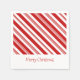 motif rayé irrégulier sucre de canne avec alternance rayures épaisses et fines en rouge et blanc. Doté d'une bande blanche avec Joyeux Noël en police rouge qui peut être personnalisée avec votre propre message.