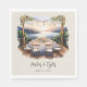 Serviettes de diner mariages, personnalisées avec les noms et la date du mariage Ce design charmant dispose d'une réception de mariage aquarelle face à l'océan avec cadre rustique en bois, fleurs tropicales, lumières féeriques et un coucher de soleil sur l'océan. Idéal pour un mariage décontracté ou boho plage, un mariage chic ou chic plage station de destination de plage classe. Arrière - plan et texte ont une palette de couleurs naturelle et marron, que vous pouvez modifier dans l'outil de conception. Notre collection Sunset Beach Wedding contient des articles de papeterie mariage et des décors de jour.