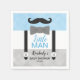 Correspond à votre invitation et décor de baby shower garçon avec ces serviettes de petit homme mignonnes en bleu et gris bébé avec une moustache, cravate arc, et bretelles. Invitation correspondante et autres décorations de fête en magasin!
