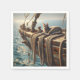 Un chat tabby est confortablement installé sur la proue d'un bateau en bois suspendu avec des cordes enroulées