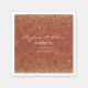 Élégant dîner de répétition en terre cuite et en parties scintillant d'or ou des serviettes en papier de réception. Personnalisé avec les noms de la mariée et du marié, leur date de mariage, et leur lieu de résidence.