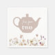 Une théière rose avec "thé pour deux" typographie à l'intérieur, ainsi que des fleurs sauvages délicats peints à l'aquarelle sur le fond. Parfait pour votre fête du thé du 2e anniversaire !