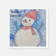 Aquarelle et bonhomme de neige en encre sur une serviette de cocktail qui dit "Mes amis sont un tas de flocons."