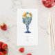 Serviette mariage de tournesol fleuri et en verre à tige. Magnifique. Texte bleu cobalt.