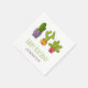 Des serviettes en papier avec une illustration fantaisiste représentant 3 joyeux petits cactus assis dans leurs pots de fleurs. Ils ont chacun leurs propres expressions uniques, souriantes et jolies.