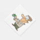 Un homme avec des ciseaux coupant de l'argent. Ce design semble vraiment efficace sur ces serviettes en papier