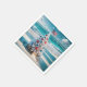 Un sapin blanc de Noël orné de décorations bleues et rouges se dresse sur une plage de sable, surmontée d'un drapeau américain