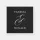 Serviettes mariages modernes avec un agencement simple et minimal avec vos noms et une élégante esperluette dans un grand format. Le thème de couleur est blanc sur un arrière - plan noir et peut être modifié dans l'outil d'édition de conception.