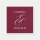 Serviettes mariages modernes avec un agencement simple et minimal avec vos noms et une élégante esperluette dans un grand format. Le thème de couleur est bordeaux et peut être modifié dans l'outil d'édition de conception.