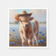 Serviette En Papier Veau Avec Casquette Cowboy En Pâturage
