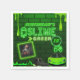 Unique nouveau et tendance thème de fête d'anniversaire! Le design Slime Green Birthday Party présente des couleurs vert citron, noir et blanc. Ajoutez votre nom, âge et photo ! Luxary Lime Green Sports Car, contrôleur de jeu Basket et flammes vertes avec Green Brick Wall Arrière - plan ©2022 Miss Sassy Party Designs