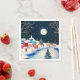 L'hiver est arrivé et a couvert un village de neige. Les enfants aiment, les gens profitent de leur nuit d'hiver contre une pleine lune brillante.