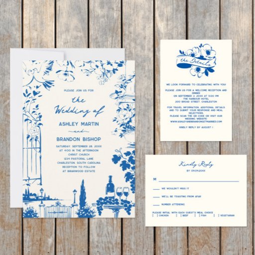 Serviette En Papier Whimsical French Blue Botanical Crest Wedding