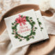 Célébrez la saison avec nos délicieuses serviettes Whimsical Holly Wreath, avec une illustration charmante d'une couronne de Noël faite de saint avec un arc rayé rouge et blanc festif qui capture la magie de Noël. L'accueil "Noël" ludique au milieu de l'illustration est écrit dans une police fantaisiste et ludique, ajoutant une touche de gaieté à vos souhaits de vacances.