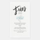 Présentant nos serviettes de toilette mariage chic et fantaisiste, avec un script moderne élégant et un design minimaliste simple, parfait pour tout mariage. Customisez-les avec les noms du couple heureux et saupoudrez dans quelques faits amusants à leur sujet. Que ce soit la réception de mariage, le dîner de répétition ou la fête de fiançailles, ces serviettes ajouteront une touche de sophistication et d'humour à votre événement. Les tons noir, turquoise et blanc dégagent du style, tandis que la typographie personnalisable rend chaque serviette unique. Préparez-vous à faire sourire vos invités et laissez une impression durable avec ces serviettes de toilette élégantes et amusantes!