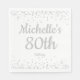 Elégant et moderne blanc avec la parties scintillant argent de la femme 80e anniversaire de fête serviettes de papier personnalisées avec un nom et un âge. Tout le texte est personnalisable.