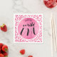 Les serviettes en papier de 1er anniversaire comportent un motif empreinte de léopard rose et blanc recouvert d'un cercle de faux papier rose personnalisé avec le nom de votre enfant et un 1er anniversaire sauvage en lettres chic. Objets CORRESPONDANTS disponibles dans notre magasin.