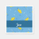 Add your name on this yellow submarine and fish on blue background pattern design.