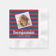 Classic Navy Blue and Red Rugby Stripes - Un motif de preppy avec des motifs audacieux et un endroit pour la date de naissance du bébé. Si votre art doit encore être ajusté, cliquez sur le bouton Personnaliser. Cela vous mènera à une zone de design où vous pouvez déplacer les choses et même changer de polices !