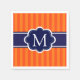 Des rayures orange modernes et élégantes avec cadre bleu marine en forme de bannière au milieu de votre monogramme personnalisé initial.
