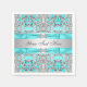 Serviettes en bleu sarcelle et argent avec des nœuds élégants en bleu sarcelle avec des diamants sur un magnifique fond en dentelle bleu sarcelle et argent. Vous pouvez ajouter du texte dans le style de police de votre choix ou supprimer le texte.