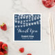 Mariage moderne String Lights Design mariage réception Merci serviettes de mariage avec des lampes à cordes blanches simples mais élégantes accrochées au sommet avec un mélange élégant de typographie moderne sur un arrière - plan bleu foncé nuit d'été. Un design simple et tendance, préppant, parfait pour l'été ! Cliquez sur le bouton "CUSTOMISER l'informatique" pour customiser les polices, déplacer le texte, changer la couleur de l'arrière - plan et créer votre propre design unique de serviettes de mariage unique.