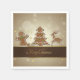 Illustration de Noël élégante et délicieuse : Arbre de Noël en pain d'épices décoré, homme en pain d'épices et cerf en pain d'épices aux étoiles dorées sur un arrière - plan de bokeh brun.