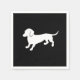 Dessin simple et élégant d'un mignon Dachshund en blanc contre un arrière - plan noir. La couleur noire de l'arrière - plan peut être changée en la couleur de votre choix.