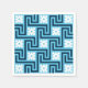 serviettes en papier dans une clé grecque Art déco ou motif labyrinthe en bleu ciel doux et bleu foncé marine / indigo, accentué de blanc