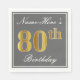 Serviette Jetable Elégant Grey, Faux Gold 80e anniversaire; Nom pers