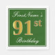 Serviette Jetable Elégant Vert, Faux Or 91ème Anniversaire + Nom