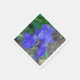 Une photographie en gros plan d'une fleur d'iris bleue imprimée sur des serviettes.