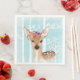 Serviette Jetable Happy Animal avec Fleurs en Forêt Bleue-Cerf