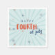 Joyeux 4 juillet ! Célébrez votre fête avec ces adorables serviettes en papier avec des feux d'artifice stylisés et une police de script de brosse moderne sur un arrière - plan de sunburst bleu clair