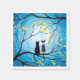 Deux chats assis sur une branche regardant la pleine lune avec un ciel bleu rempli d'étoiles. Les branches des arbres qui les entourent de petites fleurs jaunes. chat tuxedo noir et chat tacheté blanc et gris bicolore. Peinture acrylique Whimsical originale de Donna Leger. Tous droits réservés. ©dessins ironiques