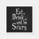Arrière - plan noir avec grunge cryptique blanc texte de style vintage dans une police gothique avec une toile d'araignée blanche et rampe d'araignée. Mangez, buvez, ayez peur et amusez-vous !