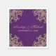 Une belle carte de numéro de table mariage violet et doré avec un médaillon sari d'ornement d'inspiration indienne exotique comme un motif au design floral et lotus. Cette serviette en papier de style indien élégant et moderne est parfaite pour toute occasion formelle ou spéciale avec un thème ethnique indonésien asiatique orientale ou marocain ou des nuits arabes. © Chrissy H. Studios, LLC. Tous droits réservés.