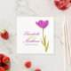 Belles serviettes en papier mariage à tulipe violet simple. Modifiez ces serviettes avec votre nom de mariée et de mariée. Une serviette simple, moderne et romantique, idéale pour un mariage de fleurs de printemps ou de tulipes. Un grand ajout personnalisé à vos tables mariages. Design et art aquarelle tulip peinture par Sarah Trett. www.sarahtrett.com