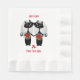Une serviette amusante pour un mariage lesbien avec deux mariées de chat cool portant des voiles blancs, portant des bouquets de rose rouge représentant les deux mariées tenant la main.