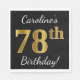 Serviette Jetable Noir, Faux Or 78e anniversaire + Nom personnalisé