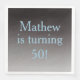 Quelque chose pour le gars qui fête son 50e anniversaire ! L'arrière - plan est gris foncé en haut et se fond en gris clair en bas. La typographie élégante bleu clair est personnalisée avec le nom du garçon d'anniversaire suivi par le texte "a 50 ans! La couleur du texte peut être modifiée à l'aide du menu d'édition à l'écran. Ces serviettes de table en papier correspondent à une invitation photo de fête "50 ans" et à d'autres accessoires de fête assortis pour vous aider à célébrer cet événement marquant.