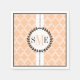 Peach, blanc quatrefoil motif papier mariage napkin avec initial et monogramme, avec un moderne motif treillis marocain, une bande blanche du haut au bas de la serviette, une ligne pointillée dessus et vos initiales et monogramme dans un cadre avec une couronne de branche noire. Il y a une frontière qui manque autour. Cette serviette en papier monogrammée à la mode et mignonne est parfaite pour d'autres occasions spéciales comme des douches nuptiales, des fêtes d'anniversaire, des baby showers, des anniversaires, etc.