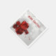 Illustration de Noël noble : Boîte cadeau rouge avec boule de Noël rouge, ruban et perles rouges sur un arrière - plan de bokeh gris-blanc clair avec étoiles.