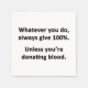 Pour l'amoureux du sarcasme en chacun de nous. Découvrez cette spiritualité "Quoi que vous fassiez, donnez toujours 100%. À moins que vous ne donniez du sang." Conception sur des vêtements, des tasses, des mousepads, des boutons et d'autres cadeaux uniques.