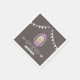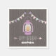 Serviettes de fête d'anniversaire avec illustration d'une lanterne violette et de bottes sur un arrière - plan d'inspiration bois.