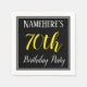 Cette conception simple et élégante de serviette en papier comporte un message comme "NameHere’s 70th Birthday Party", avec le "70th" en texte jaune raffiné, dans une zone carré de couleur noire avec un contour de bordure simple. Un nom personnalisé peut être utilisé. Des serviettes comme celles-ci pourraient être utilisées à une fête d'anniversaire pour quelqu'un qui célèbre son soixante-dixième anniversaire. [~Z0000150]