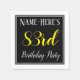 Cette conception simple et élégante de serviette en papier comporte un message comme "Name-Here’s 83rd Birthday Party", avec le "83rd" en texte jaune raffiné, dans une zone carré de couleur noire avec un contour de bordure simple. Un nom personnalisé peut être utilisé. Des serviettes comme celles-ci pourraient peut-être être utilisées à une fête d'anniversaire pour quelqu'un qui célèbre son quatre-vingt-troisième anniversaire. [~Z0000150]