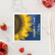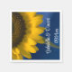 Customisez le joli tournesol jaune sur des serviettes en papier Mariage bleu avec le nom personnel de la mariée et du marié et leur cérémonie de mariage et date de réception d'été ou d'automne. Ces élégantes serviettes jetables de mariage de tournesol personnalisées présentent une photographie florale rapprochée d'une fleur de tournesol jaune avec un arrière - plan bleu.